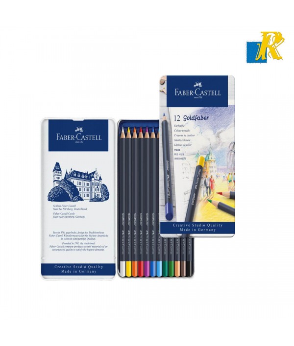 Faber-Castell Gold Faber Colour Pencil 12 Color In A Flat Metal Tin-ITEM NO:114712