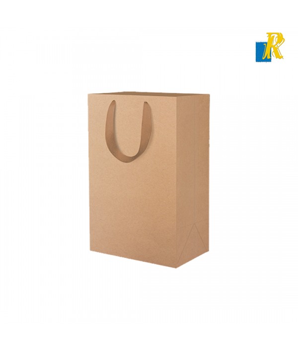 12-Pack Kraft Brown Paper Bags 31x12x42cm Plain Paper Bags with Ribbon Handle