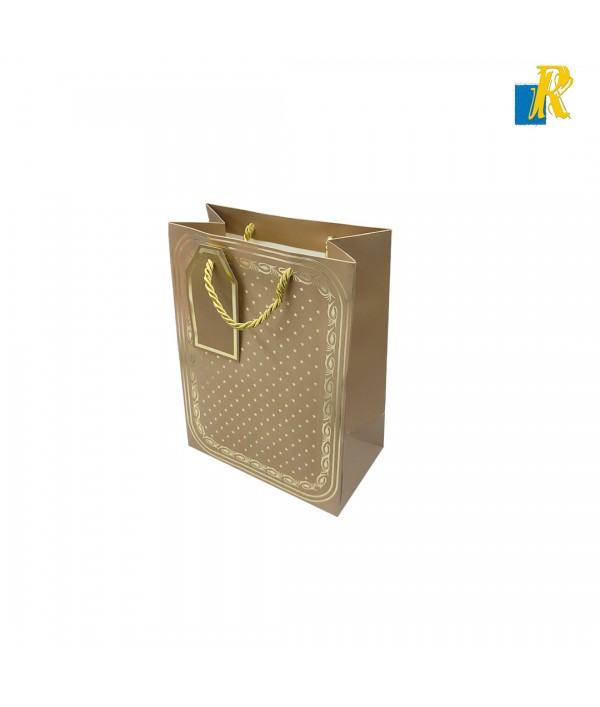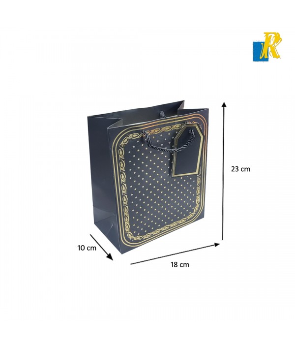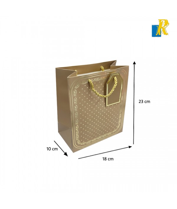 12-Pack Color Paper Bags With Golden Print / Rope Handle & Tag 23x18x10cm Item No.10405-157