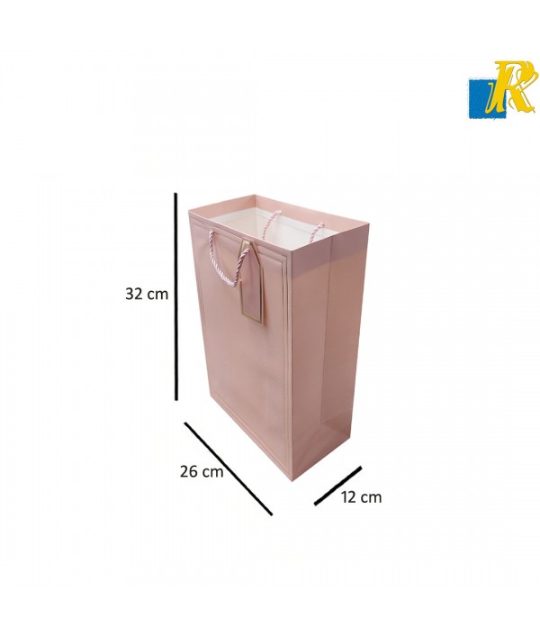 12-Pack Color Paper Bags With Golden Design,Rope Handle & Tag 26x32x12cm Item No.20252636
