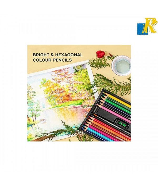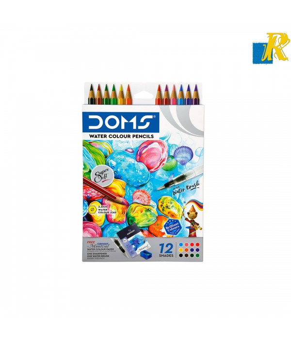 DOMS Super Soft Hexagonal Pre-Sharpened Water Colour Pencils Free Watercolor Paper, Sharpener & Water Brush 12 Shades(Art No.8392)