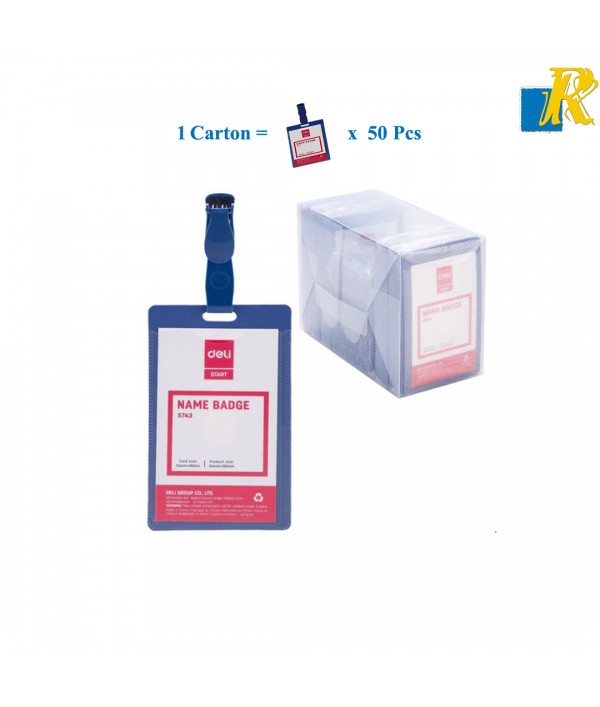 Deli Start Name Badge Card Holders with Clips 90x54mm 50 PCS/Box Item No.5742 1 Carton = 50 Pcs Card Size: 90x54mm Product Size: 100x68mm Quantity: 50 Pcs in a box With clips Orientation: Landscape