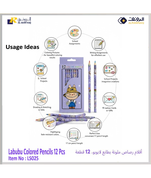 Labubu Plastic Colored Pencils Set of 12 Colors Assorted Item No.LS025